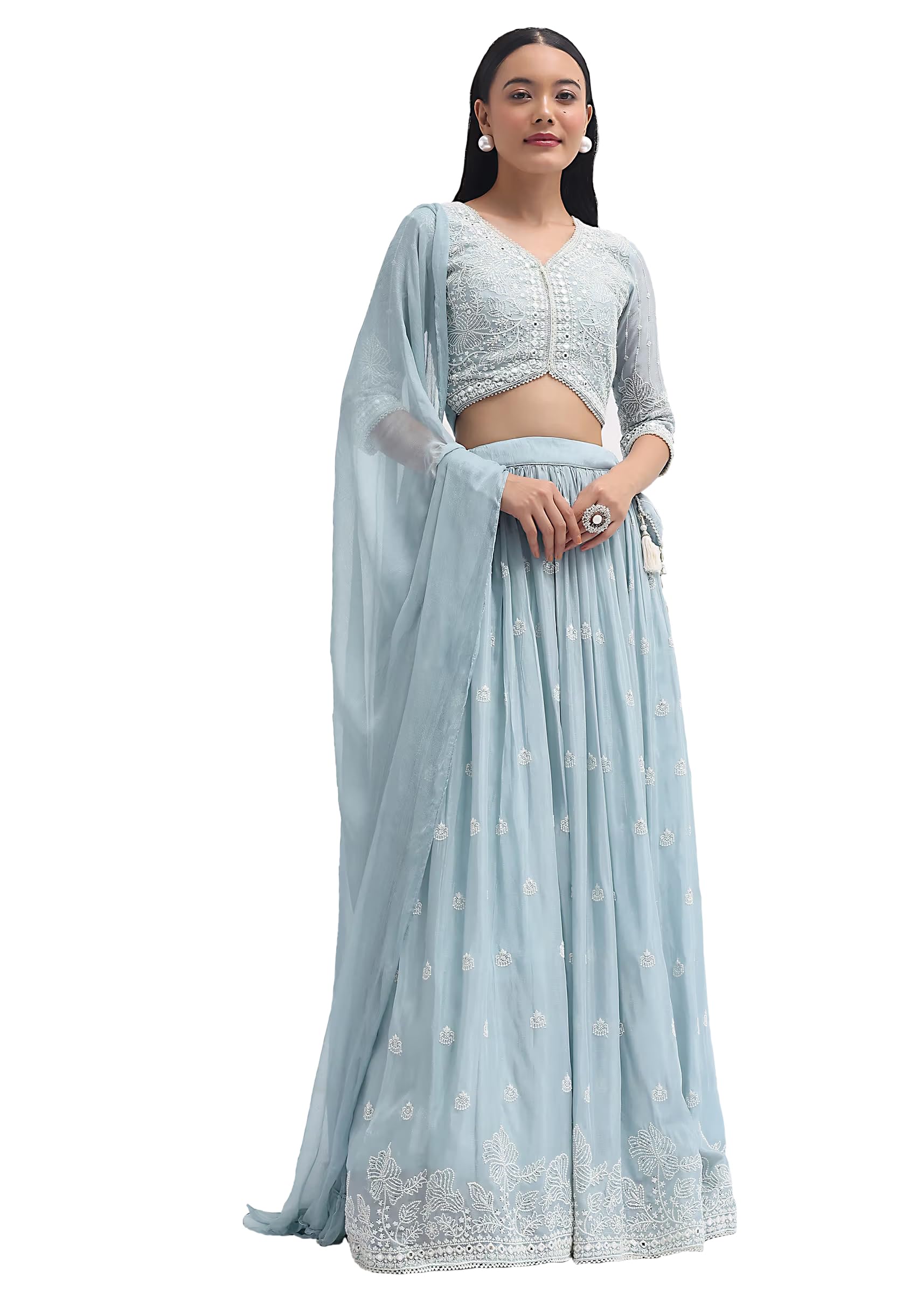 Brand: Fab Window Color: Ice Blue Features: Faux Georgette Fabric: The lehenga choli set is crafted from faux georgette fabric, providing a luxurious look and feel. Sequin Embroidered Work: The lehenga and choli are adorned with intricate sequin embroidery, adding a touch of elegance and glamour. Colour Options: Available in three stunning colours – ice […]