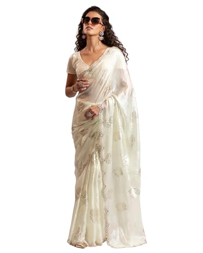 Brand: Peachmode Color: Offwhite Features: Pattern & Details : Offwhite striking saree is adorned with elegant floral foil prints and dazzling zarkan work, adding a radiant sparkle to your ensemble. Fabric: Crafted from lightweight satin silk with an ultra-soft texture, it comes with a matching unstitched blouse piece for personalized styling. Comfortable & Soft: The […]