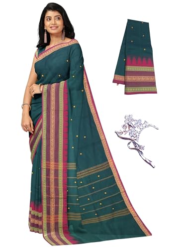 Brand: NandaVanam Color: Bottle Green Features: WHAT YOU GET — 1 Cotton Saree with Running Blouse, 1 Assorted Saree Pin, 5 Safety Pins PREMIUM CHETTINAD COTTON SAREES FOR WOMEN :: Discover the elegance of Chettinad Cotton Sarees for women, crafted with traditional artistry and ideal for both daily wear and special occasions. SOFT AND COMFORTABLE […]