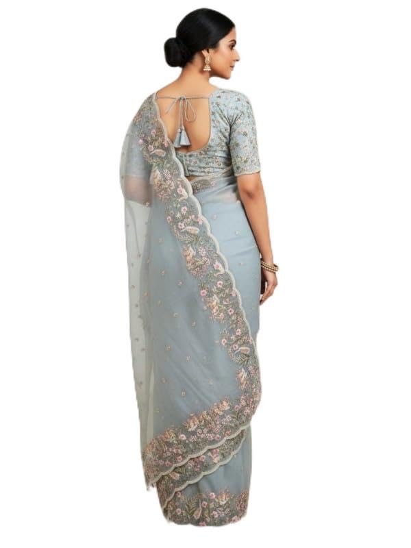 Color: Powder Blue Features: Premium Fabric: Made of Pure Kora Silk (Organza) – lightweight, soft, and elegant. Elegant Design: Features intricate floral resham embroidery with delicate birds and leaf motifs. Designer Border: Comes with a beautiful scalloped embroidered border, adding a royal charm. Perfect Occasion Wear: Ideal for weddings, parties, receptions, and festive occasions. Blouse […]