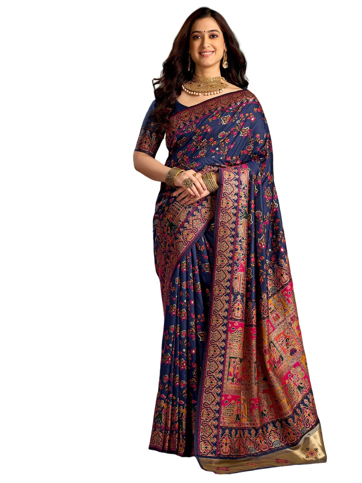 Brand: Sangam Prints Color: Blue Features: Elegant Traditional Design: Beautifully woven silk saree with intricate zari work for a royal ethnic look. Silk Fabric: Made from soft, smooth silk that drapes gracefully and adds a luxurious touch to any occasion. Rich Color Palette: Available in stunning shades like Orange, Black, Peacock Blue, Olive Green, Mustard […]