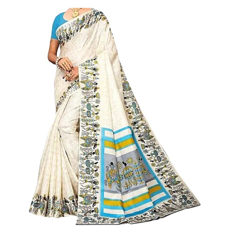 Color: Cream, Mehndi Green, Blue Features: MATERIAL: Handwoven Khadi silk saree featuring a luxurious texture and traditional craftsmanship for elegant draping DESIGN ELEMENTS: Beautiful animal and tribal prints adorning the border and pallu, creating a distinctive ethnic appeal COLOUR PALETTE: Stunning cream base complemented by mehndi green and blue accents for a sophisticated look STYLING: […]