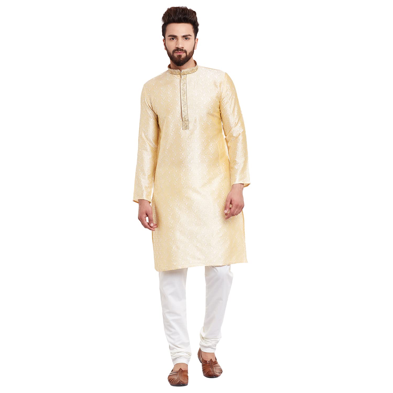 Brand: SOJANYA Color: Golden Features: Style: Kurta Churidar Pyjama SET, Fabric: Silk Blend (80% Silk 20% Blend) Collar: Mandarin, Sleeves: Full, Fit type: Regular/ Comfort, Length: Knee length Kurta Product Size Guidance: Please refer to CHEST size measurement in the SIZE CHART for your correct size Fabric Care: 1st wash Dry Clean recommended, then normal […]